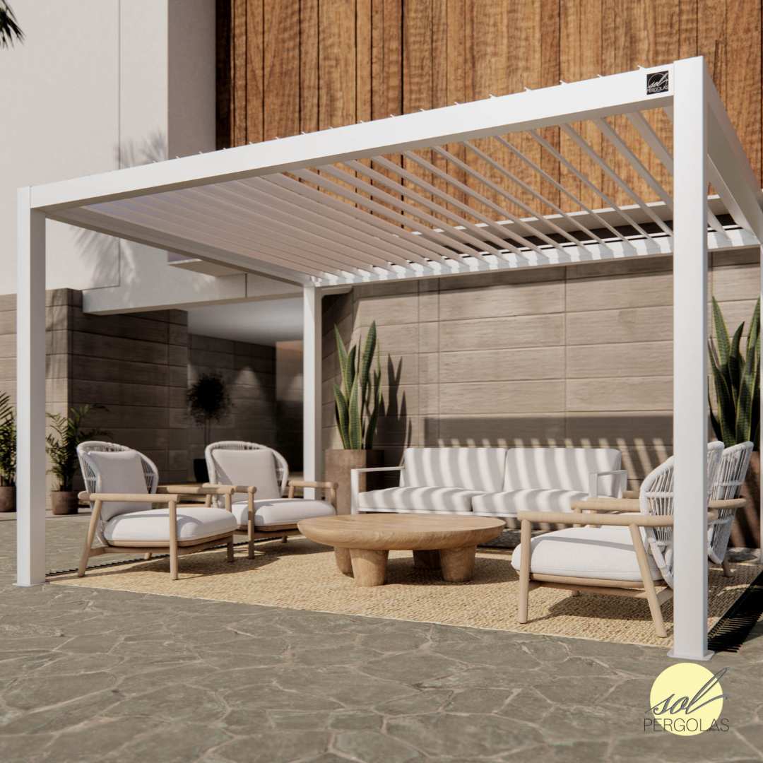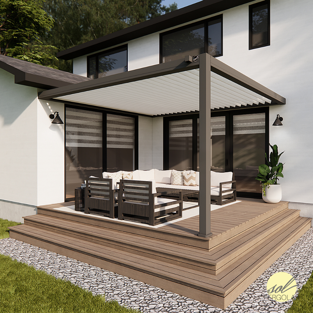 En aluminium haut de gamme et dotée de l'ouvres orientables sur mesures, elle est offerte en trois couleurs élégantes et s’adapte à tous les espaces extérieurs.